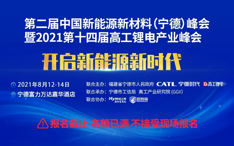 8月12-14日,2021第十四届高工锂电产业峰会将在宁德富力万达嘉华酒店举行,此次峰会由宁德市人民政府、宁德时代、高工锂电联合主办,主题为“开启新能源新时代”。
